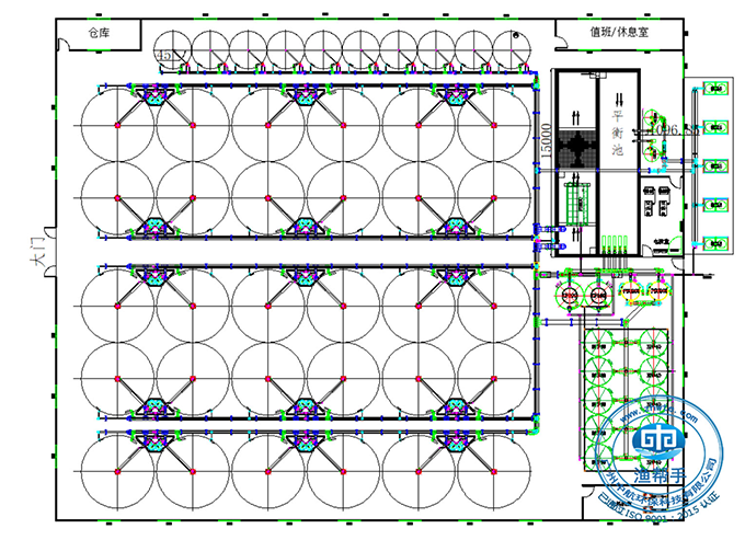 方案落地:4 套 ZH-RAS 系统分 2 个车间布局(15m×56m / 车间),优化温控与水质调配功能,适配淡水鱼养殖需求。